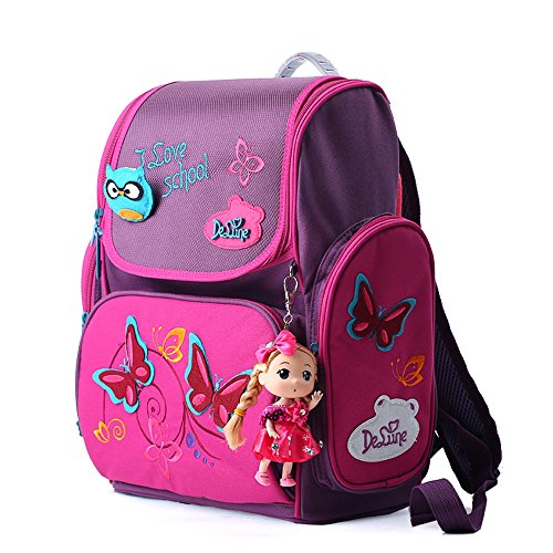 ^^*Delune Enfants Cartable Étanche et Grande Capacité avec Sac à Dos Orthopédique Mignon 3D Design Papillon (Rose Rouge) Meilleure offre de prix.
