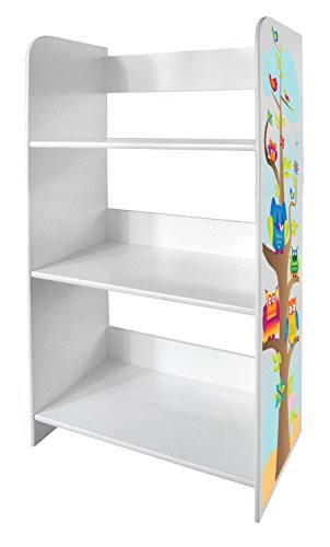 ^^Prix Bibliothèque Meuble De Rangement Motif Hiboux Chouettes Colorées Bibliothèque Décoration Etagere De 3 Casiers Blanc Sur Des Livres de Jouets.